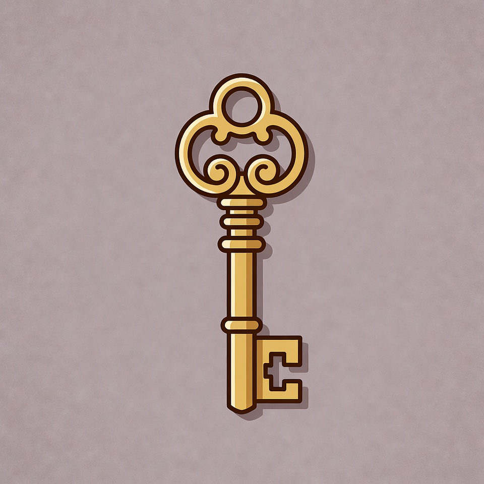 clipart, decorative, gold, golden key, illustration, isolated background, line art, metal, object, ornate key, skeleton key, symbol, vector, vintage key, key