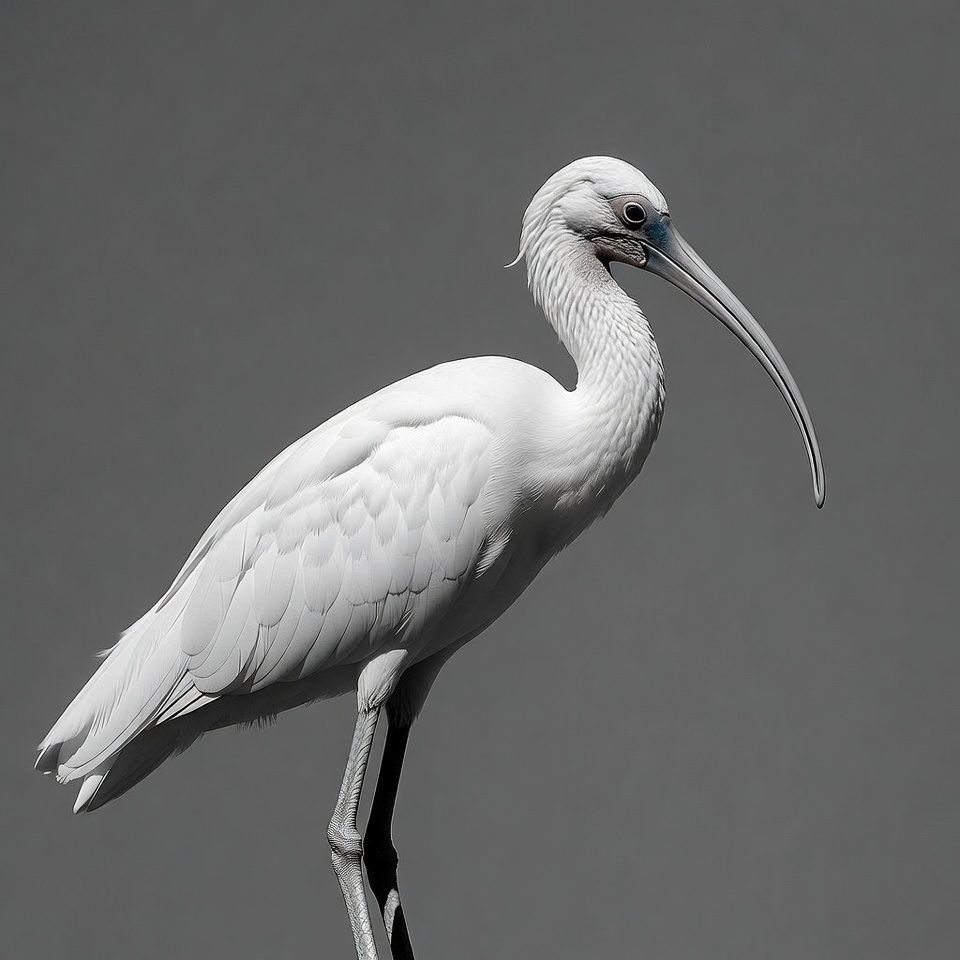 animal, bird, curved beak, feathers, gray background, ibis, isolated background, long beak, neck, standing bird, wading bird, white bird, wildlife, white ibis