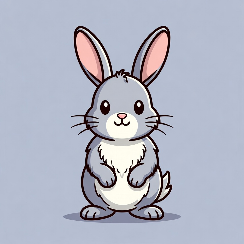 adorable, animal, big eyes, cartoon bunny, chibi, clipart, cute bunny, fluffy, gray fur, gray rabbit, illustration, isolated background, kawaii, pink ears, rabbit, simple background, standing, vector art, bunny
