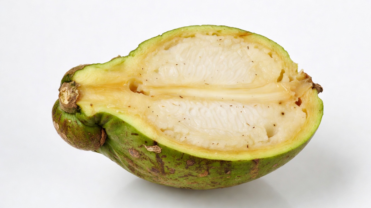black seeds, custard apple, cut fruit, exotic fruit, fibrous pulp, fresh fruit, fruit interior, graviola, green skin, guanabana, isolated background, sliced fruit, tropical fruit, white flesh, soursop