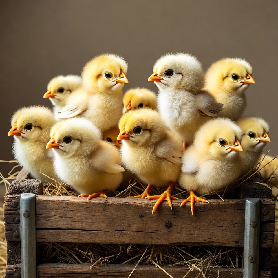 Chicks in wooden crate