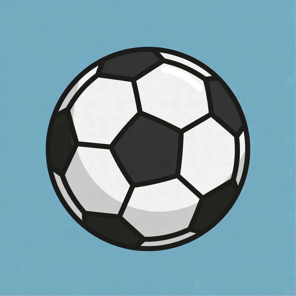 ball, black white, blue background, cartoon, clipart, football, game, illustration, isolated background, pentagons, round, simple, soccer, sport, sports equipment, vector, soccer ball