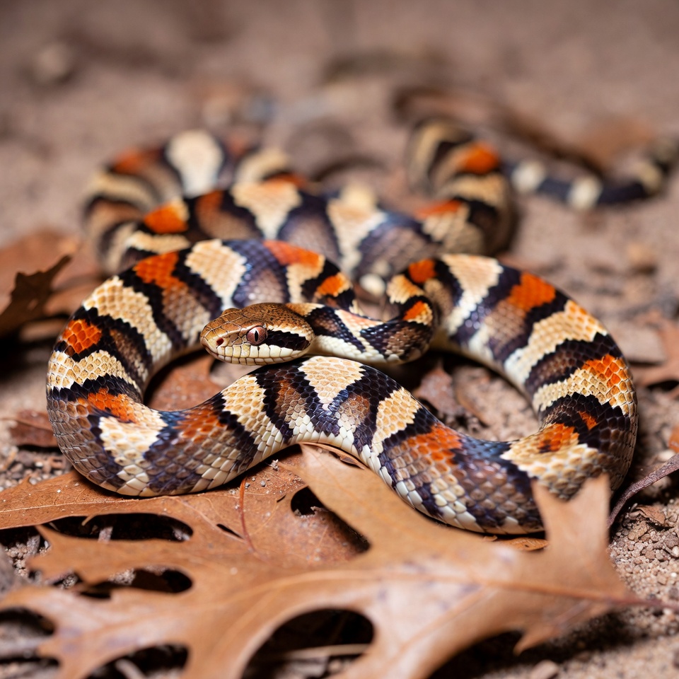 Milk Snake on Autumn Leaves