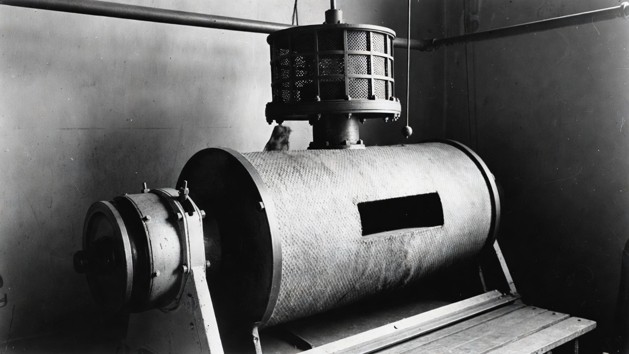 antique engine, black and white, cylindrical drum, engineering tool, factory machine, historical machine, industrial equipment, industrial machine, machinery detail, mechanical gears, metal cylinder, metal grate, old equipment, pipe fittings, smokestack, steam boiler, vintage machinery, vintage photo, workshop bench, steam engine