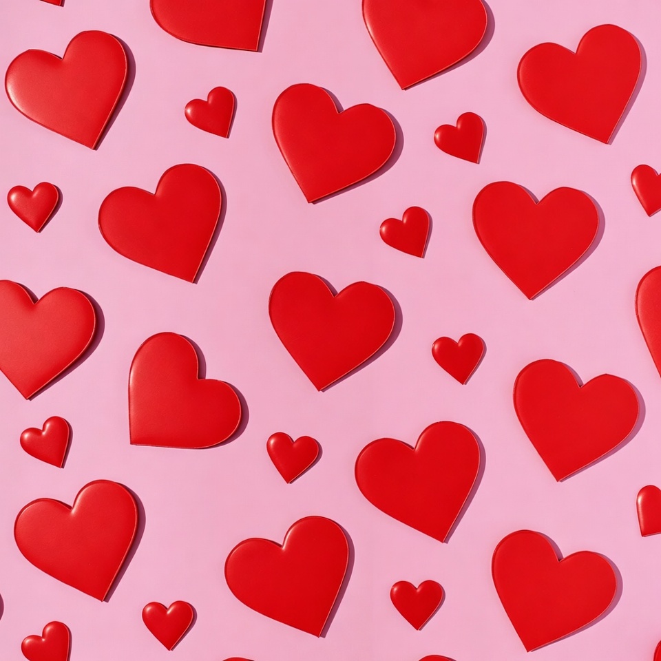 Red Hearts on Pink Background