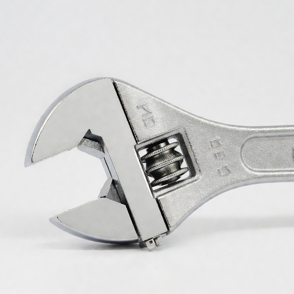 DIY tool, adjustment screw, close-up, hand tool, hardware, isolated background, jaws open, metal tool, plumbing tool, repair tool, shiny metal, silver wrench, tool, wrench, adjustable wrench
