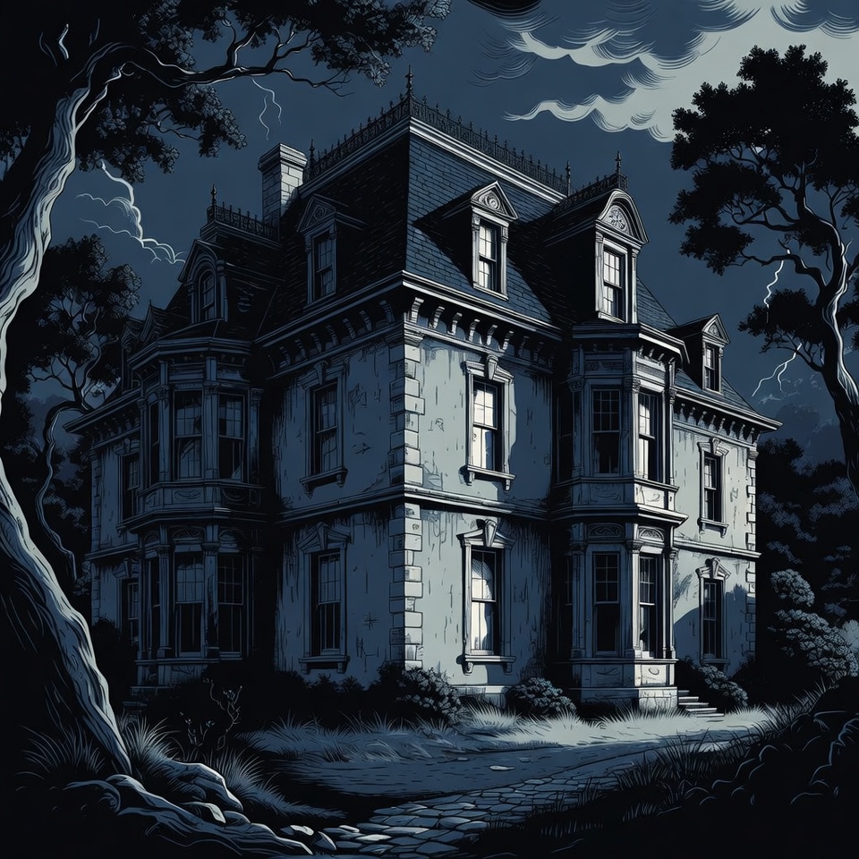 Haunted Mansion in Stormy Night