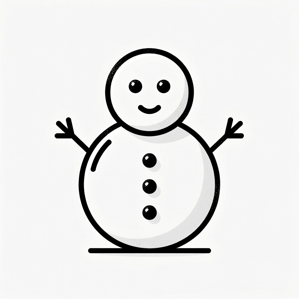 black outline, cartoon snowman, clipart, cute snowman, happy snowman, illustration, isolated, line art, simple drawing, smiling snowman, snow figure, snow man, white background, winter, snowman