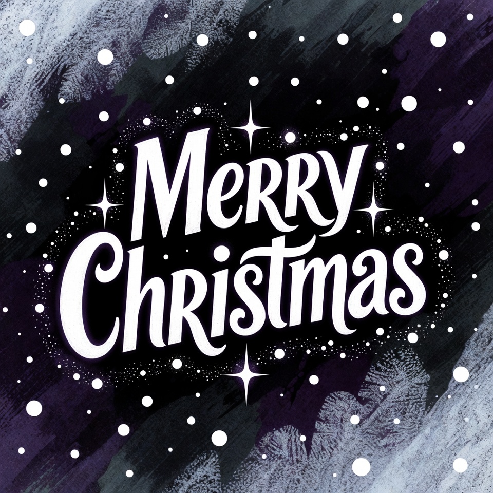 Christmas, New Year, blue gradient, celebration, clipart, digital art, festive, frost, graphic design, greeting, holiday, illustration, isolated background, purple background, script font, snow, snowflakes, sparkles, stars, text, typography, winter, Merry Christmas