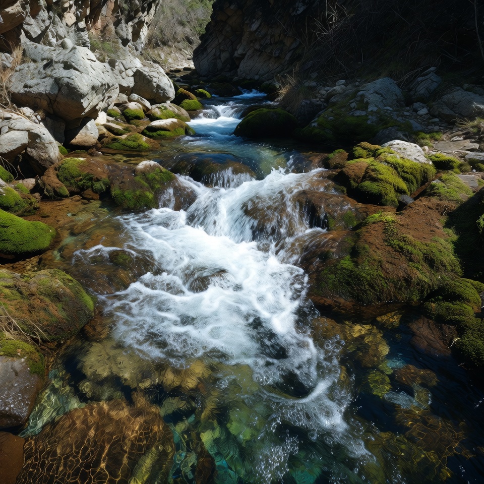 boulders, canyon, canyon stream, clear water, flowing water, foaming water, gorge, gray rocks, green moss, landscape, mossy rocks, mountain gorge, natural water, nature, outdoors, rapids, river, rocks, rocky stream, scenic river, stream, turquoise water, water flow, waterfall, mountain stream