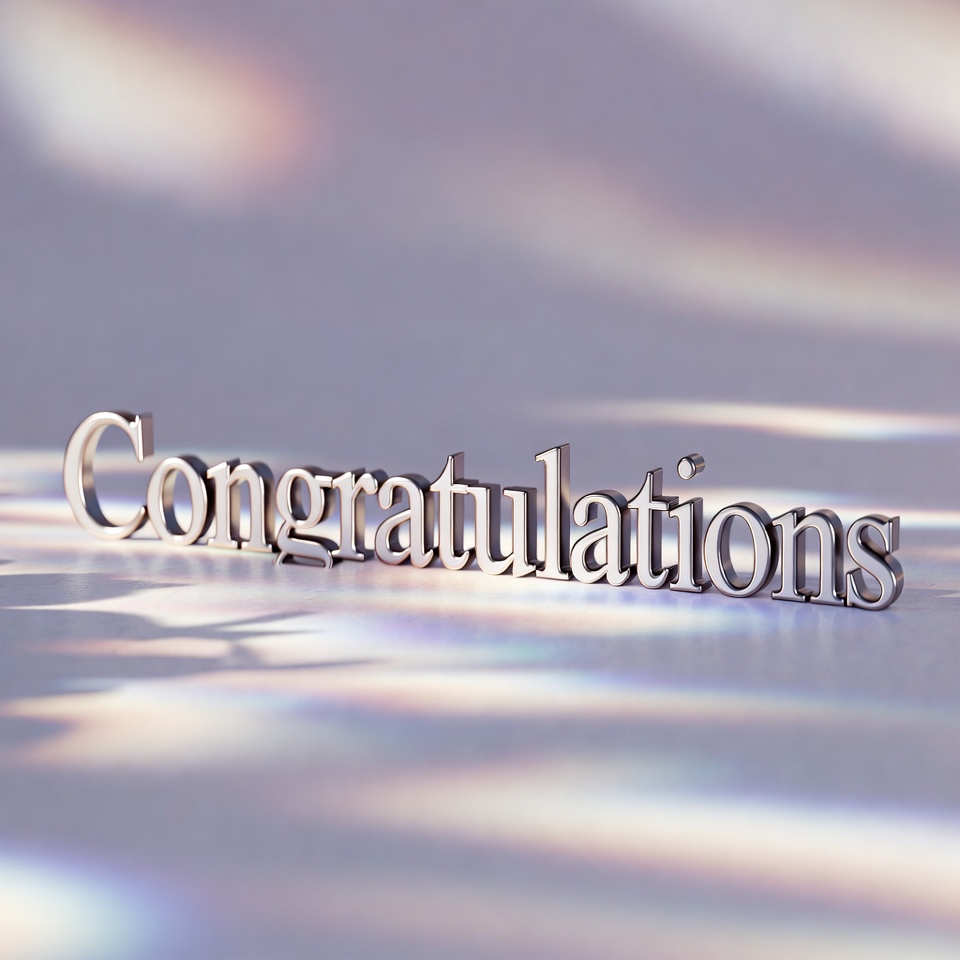 Shiny Congratulations Text on Reflective Surface