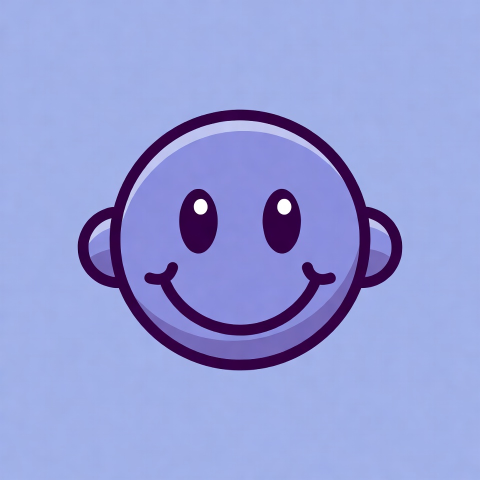 big eyes, black outline, cartoon character, cartoon face, cheerful face, clipart, cute face, emoji, glossy face, happy face, illustration, light blue background, purple color, purple face, round face, simple illustration, smiling face, vector art, wide smile, smiley face