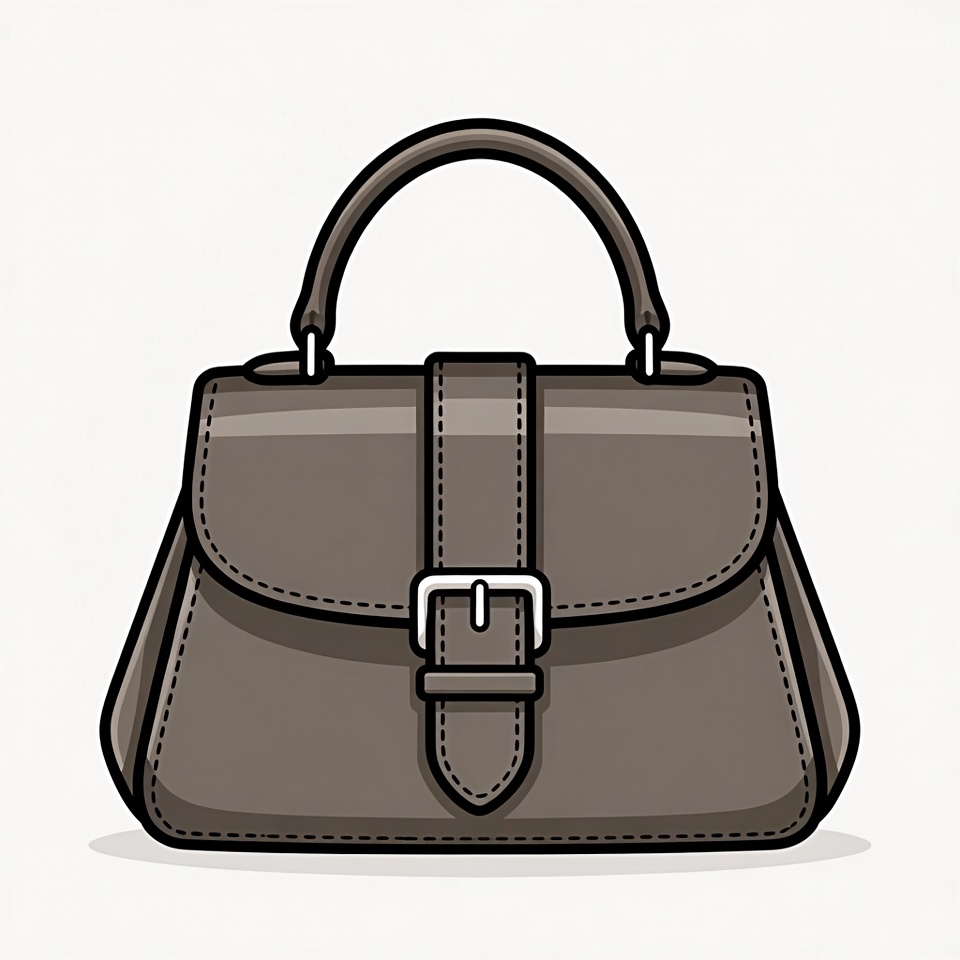 brown handbag, brown leather, clipart, designer purse, fashion accessory, handle, illustration, isolated background, leather bag, purse, silver buckle, stitched bag, tote bag, vector art, handbag