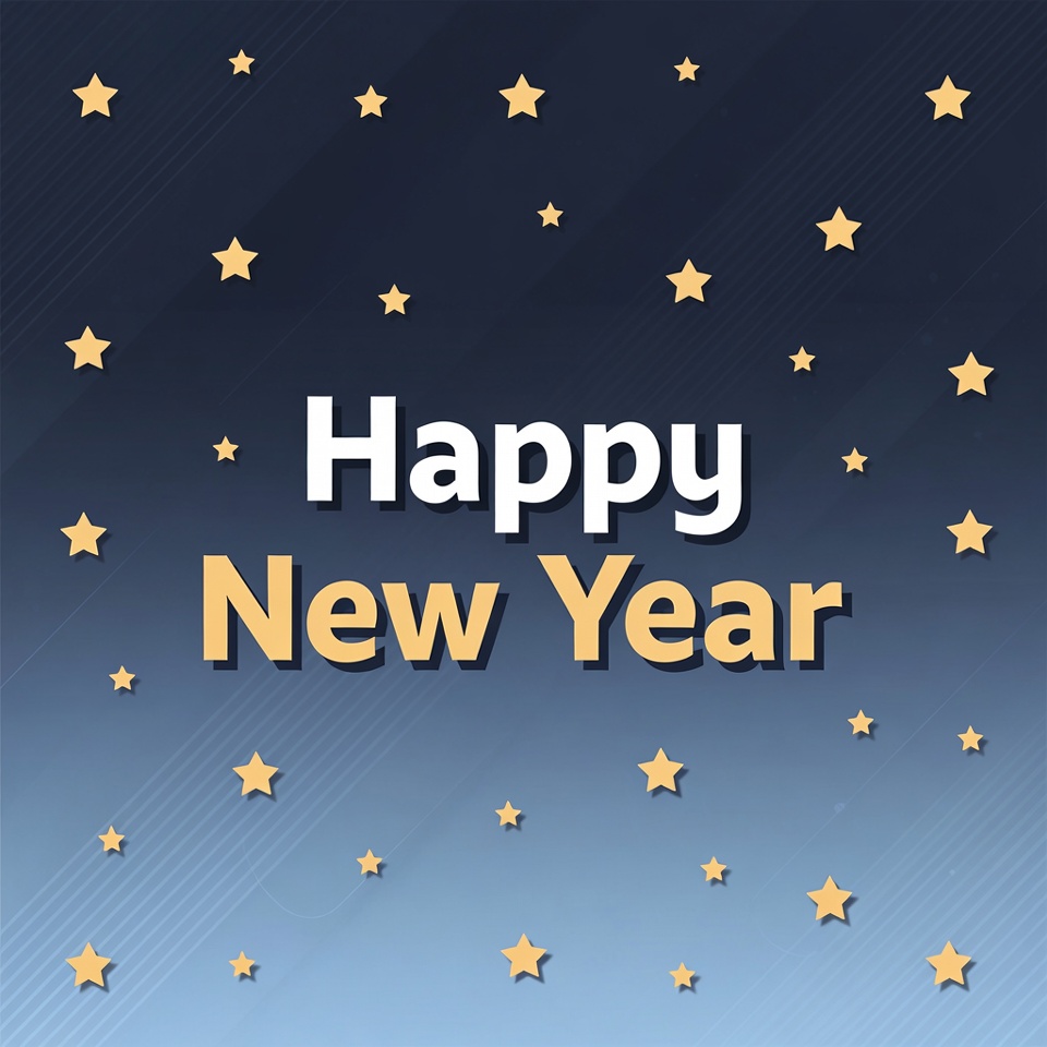 blue gradient, card, celebration, clipart, dark background, festive, glossy, golden stars, greeting, holiday, illustration, isolated background, new year, new years eve, shiny, stars, text, white text, yellow stars, yellow text, happy new year