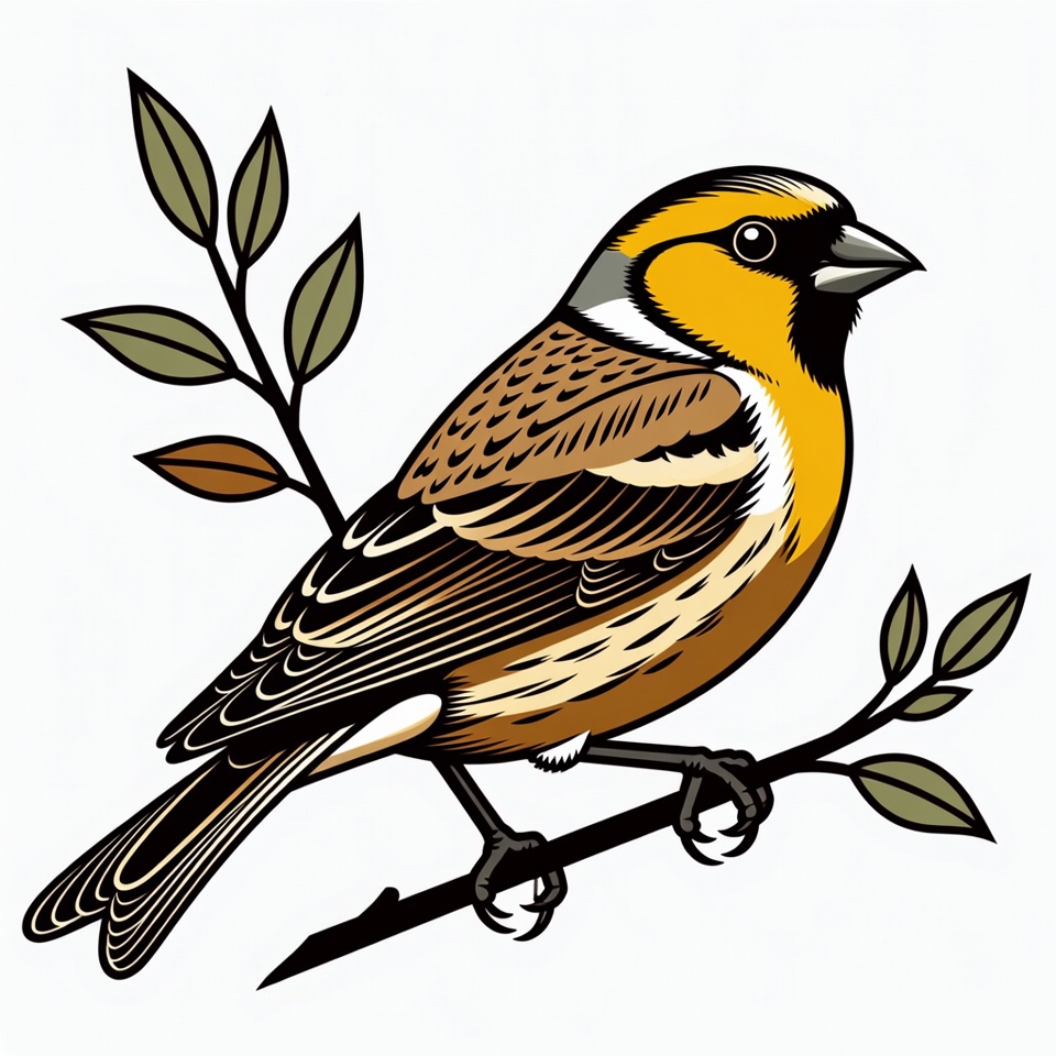 Yellowhammer Bird on Branch Illustration