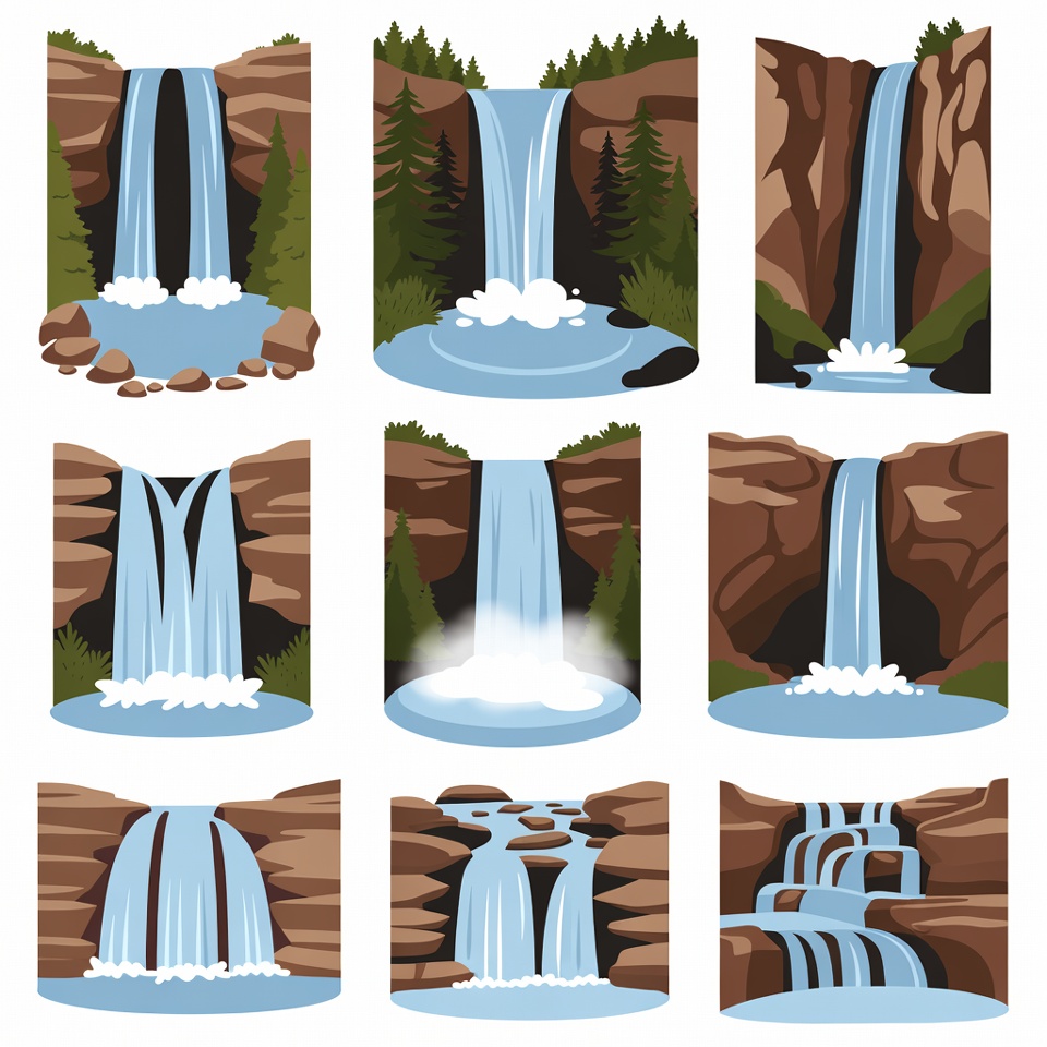 Waterfall Clipart Illustrations Set