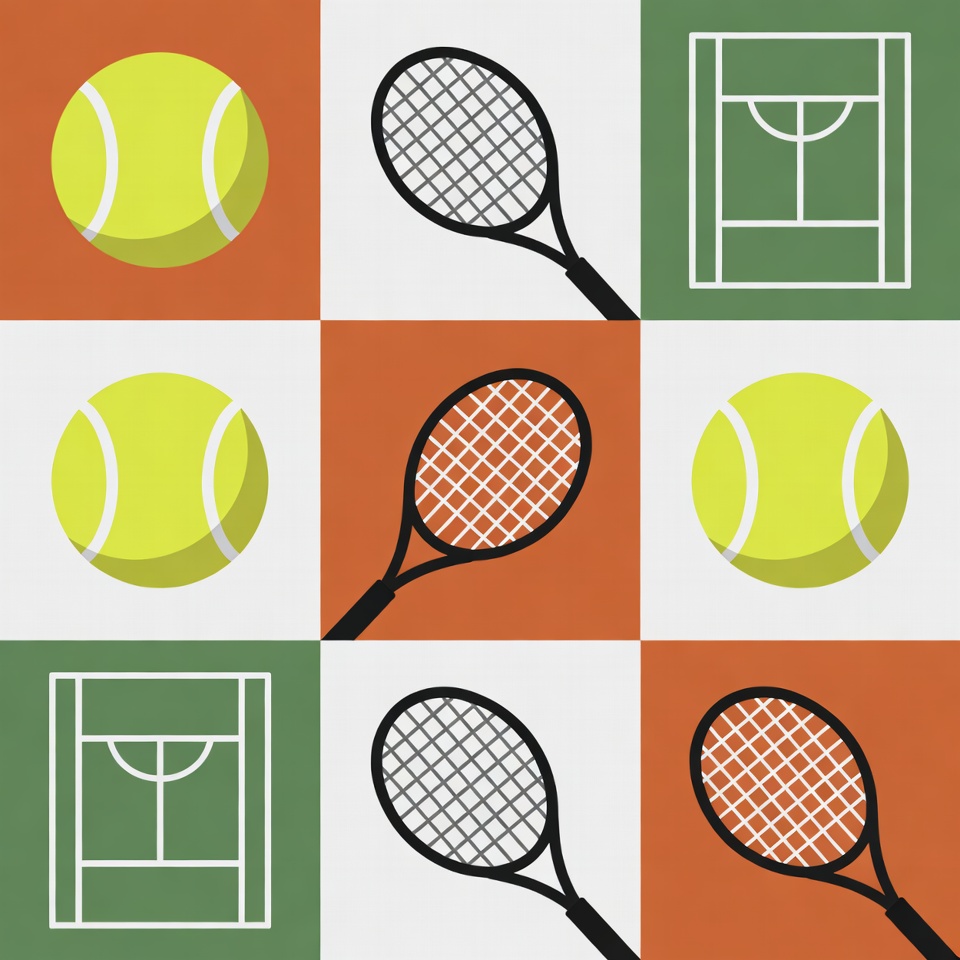 black racket, clipart, green court, grid pattern, isolated background, net, orange racket, racket handle, sports graphic, sports icons, tennis court, tennis equipment, tennis racket, vector illustration, yellow ball, tennis ball