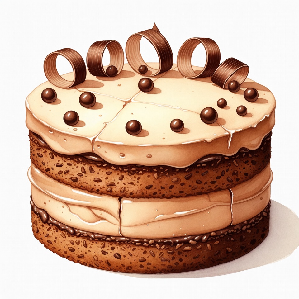 bakery, cake, chocolate, chocolate balls, chocolate curls, clipart, cream frosting, dessert, food, illustration, isolated background, layered cake, pastry, sweet, chocolate cake