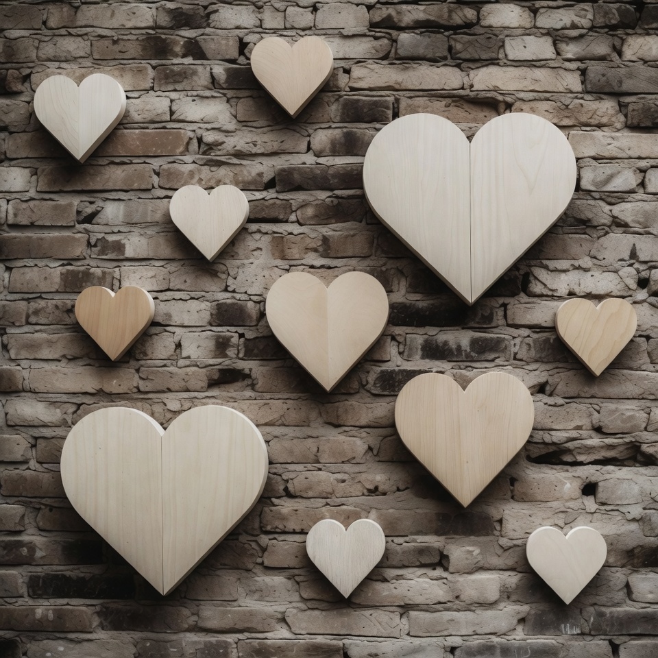 Wooden hearts on brick wall