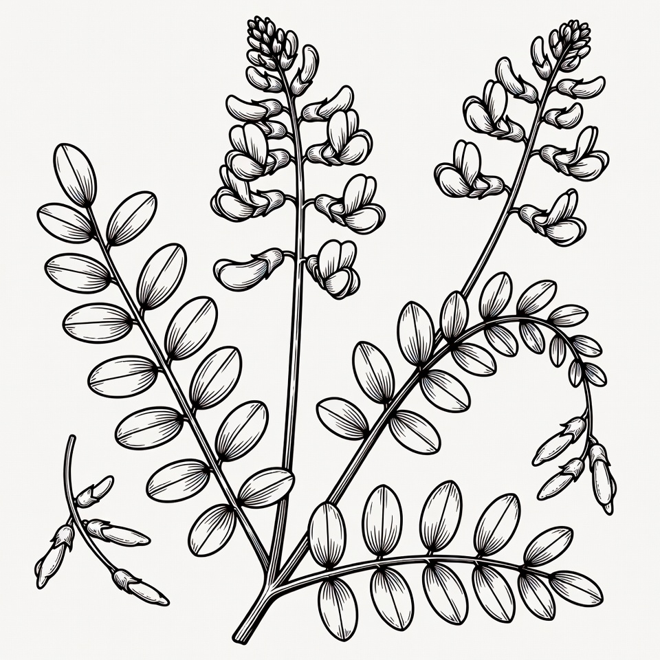 Black and White Lupine Plant Illustration