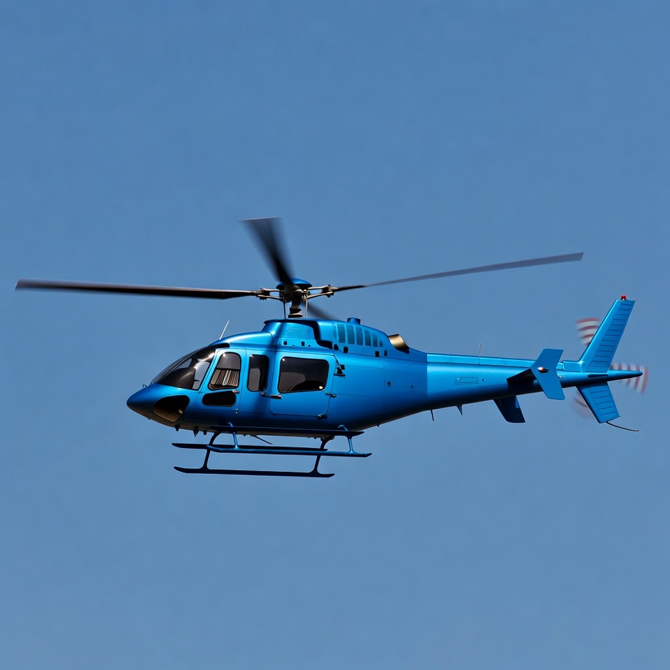 aerial vehicle, aircraft, aviation, blue helicopter, blue sky, chopper, clear sky, flying helicopter, helicopter flying, isolated background, rotor blades, sky, helicopter
