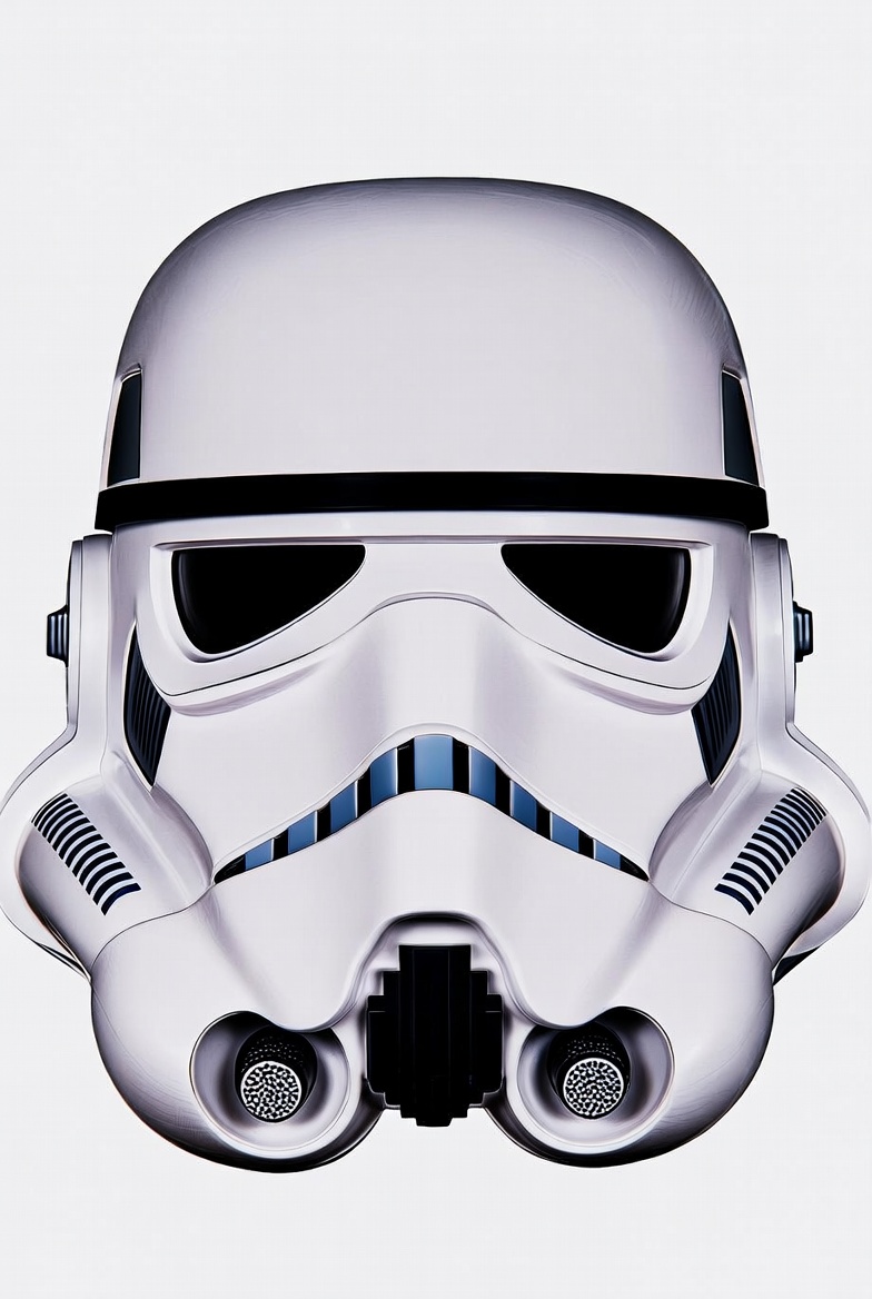 Imperial helmet, Mandalorian style, Star Wars, armor helmet, black visor, blue stripes, clone trooper, cosplay helmet, front view, futuristic helmet, illustration, isolated background, sci-fi helmet, toy helmet, white helmet, Stormtrooper helmet