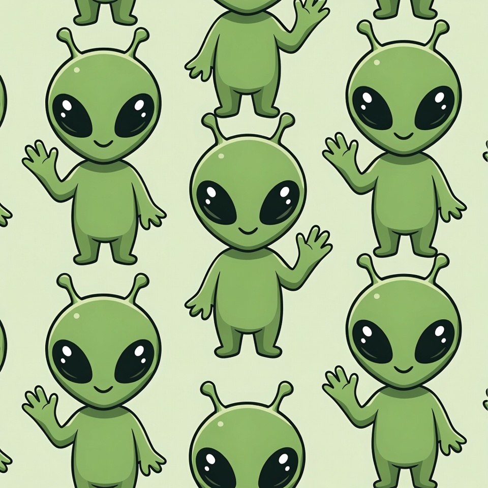 alien pattern, antennae, big eyes, cartoon aliens, clipart, cute aliens, extraterrestrial, green aliens, green color, illustration, isolated background, pattern, space aliens, waving aliens, aliens