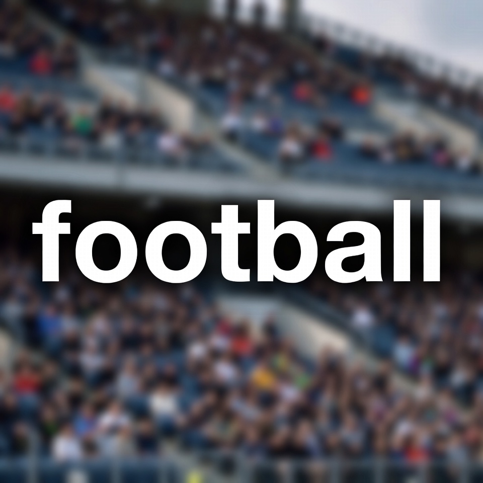 A blurred stadium filled with a large crowd of spectators in the stands. The word 'FOOTBALL' is prominently displayed in large white bold letters across the foreground. The background features stadium seating with people in various colored clothing.