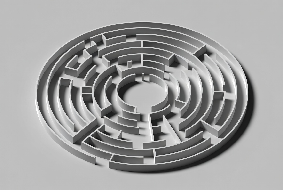 3D maze, circular maze, clipart, gray maze, illustration, isolated background, labyrinth, maze puzzle, puzzle, round labyrinth, top view, maze