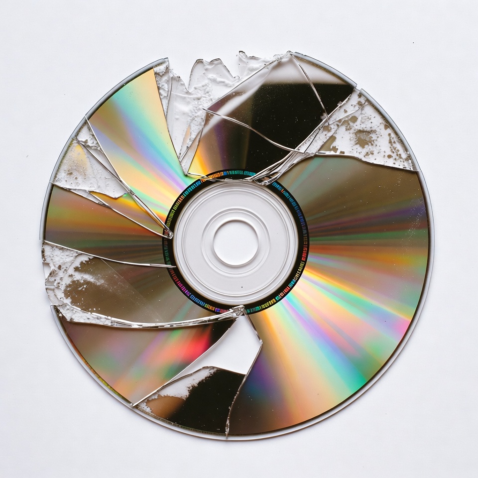 CD, CD disc, broken, broken disc, compact disc, cracked, cracked compact disc, damaged media, disc, fractured CD, isolated background, optical disc, rainbow, rainbow reflection, reflective, shattered, shattered disc, broken CD