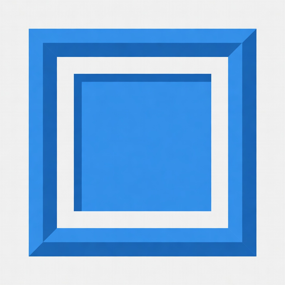 A simple vector illustration features a large blue square frame with a smaller blue square inside and white borders. The design uses clean geometric lines on a transparent background. It resembles nested frames in a minimalist style.