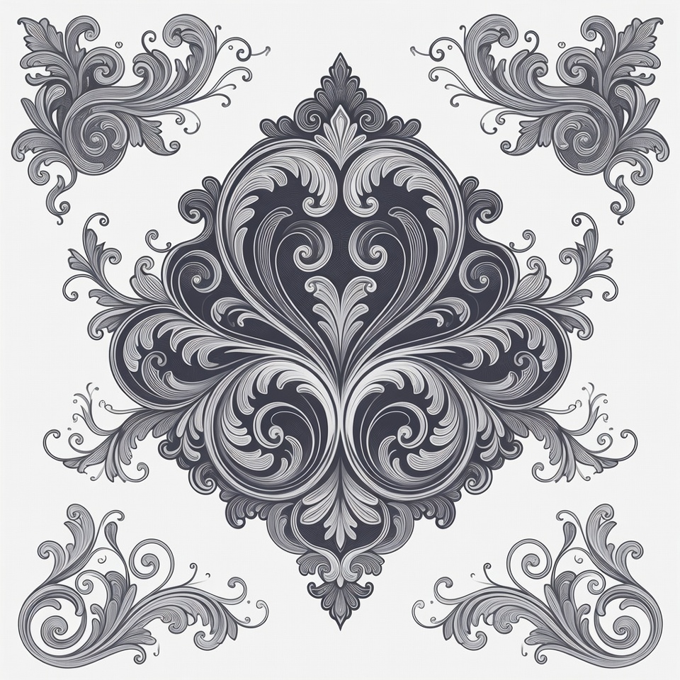 Ornate Gray Floral Vector Ornaments