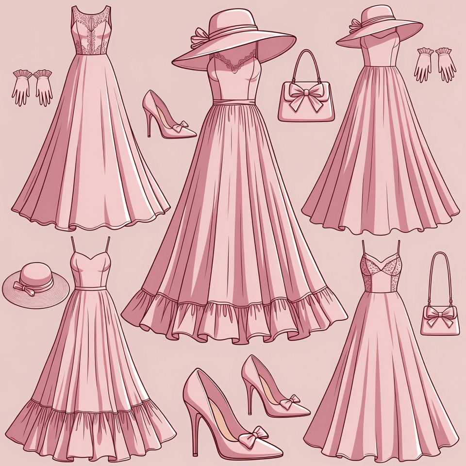 Pink Elegant Dresses and Accessories Illustration