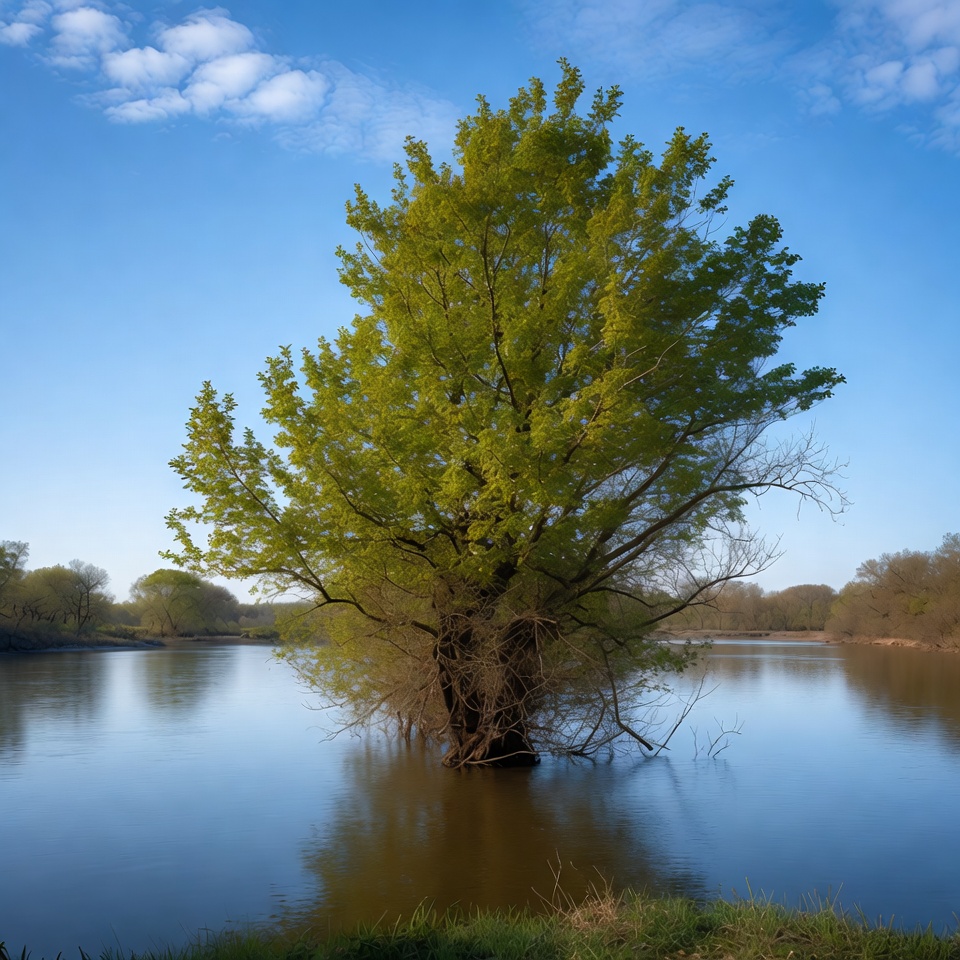 Tree Growing in Calm Lake