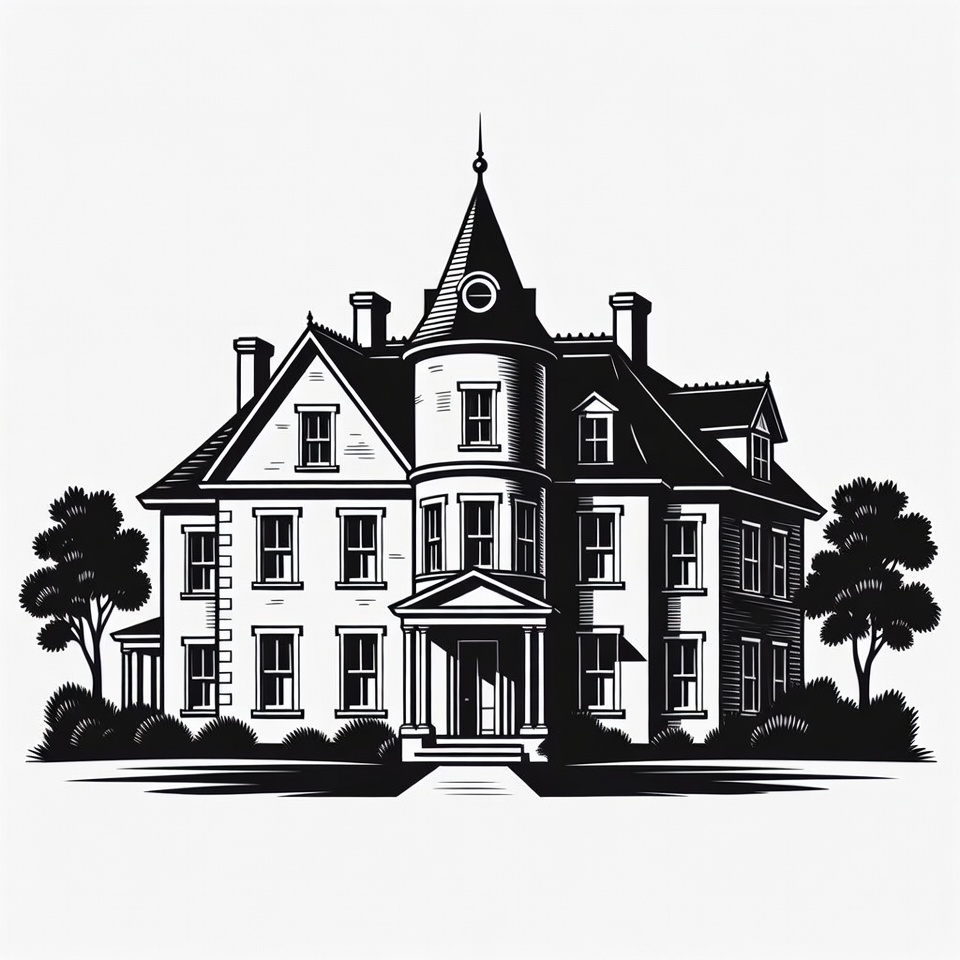 Victorian Mansion Silhouette Illustration
