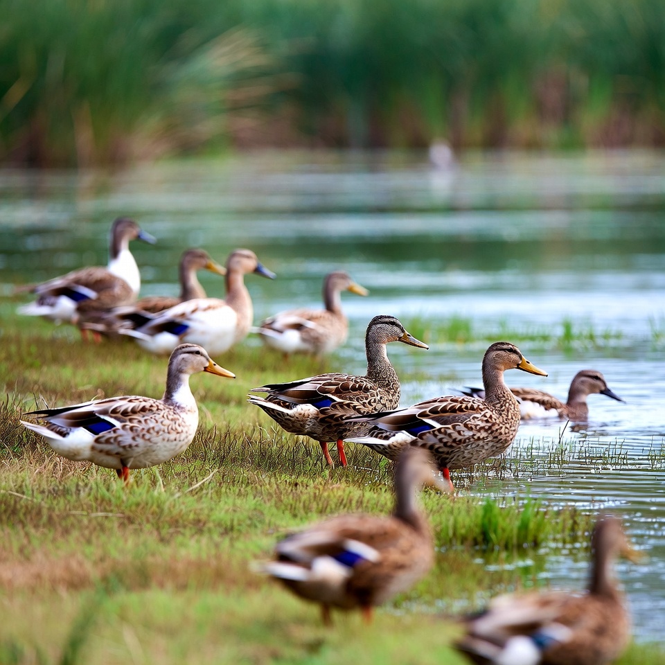 Group of Mallard Ducks by Water