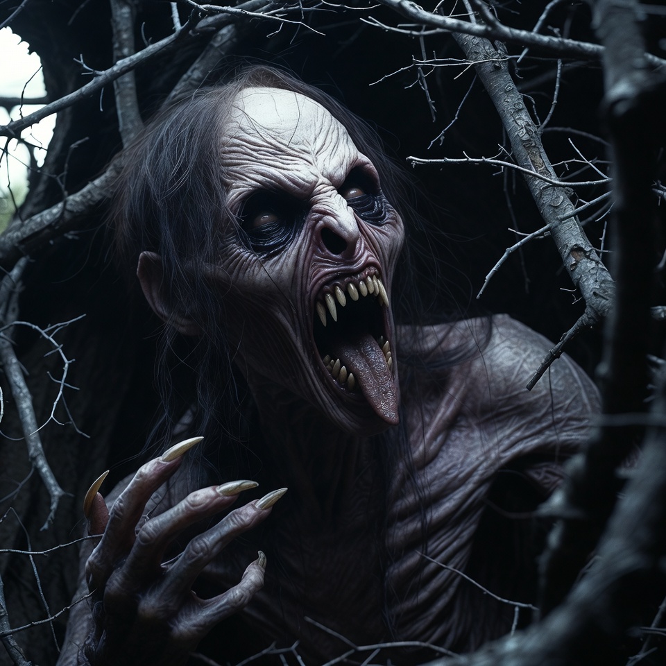 Female Vampire Screaming in Branches