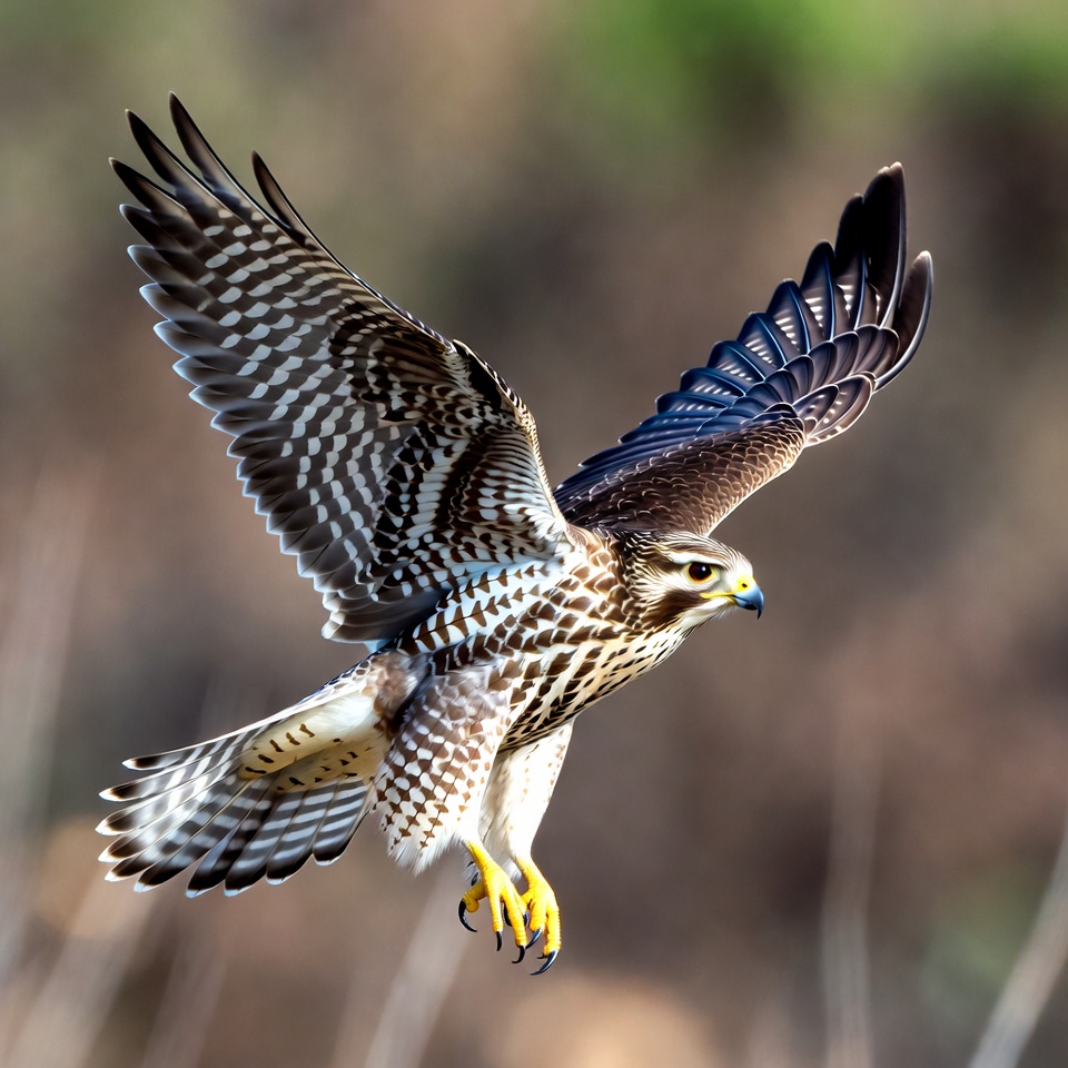 aerial, bird, bird of prey, blurred background, brown feathers, feathers, flight, flying, hawk, hills, nature, outdoors, raptor, reeds, soaring, talons, white bars, wildlife, wings spread, yellow beak, red-tailed hawk