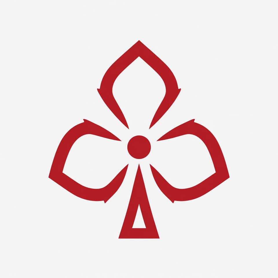 A bold red clubs symbol from a deck of playing cards is depicted on a white background. The icon features three curved lobes with pointed tips and a small central circle. It has a clean, vector-style design with sharp edges.