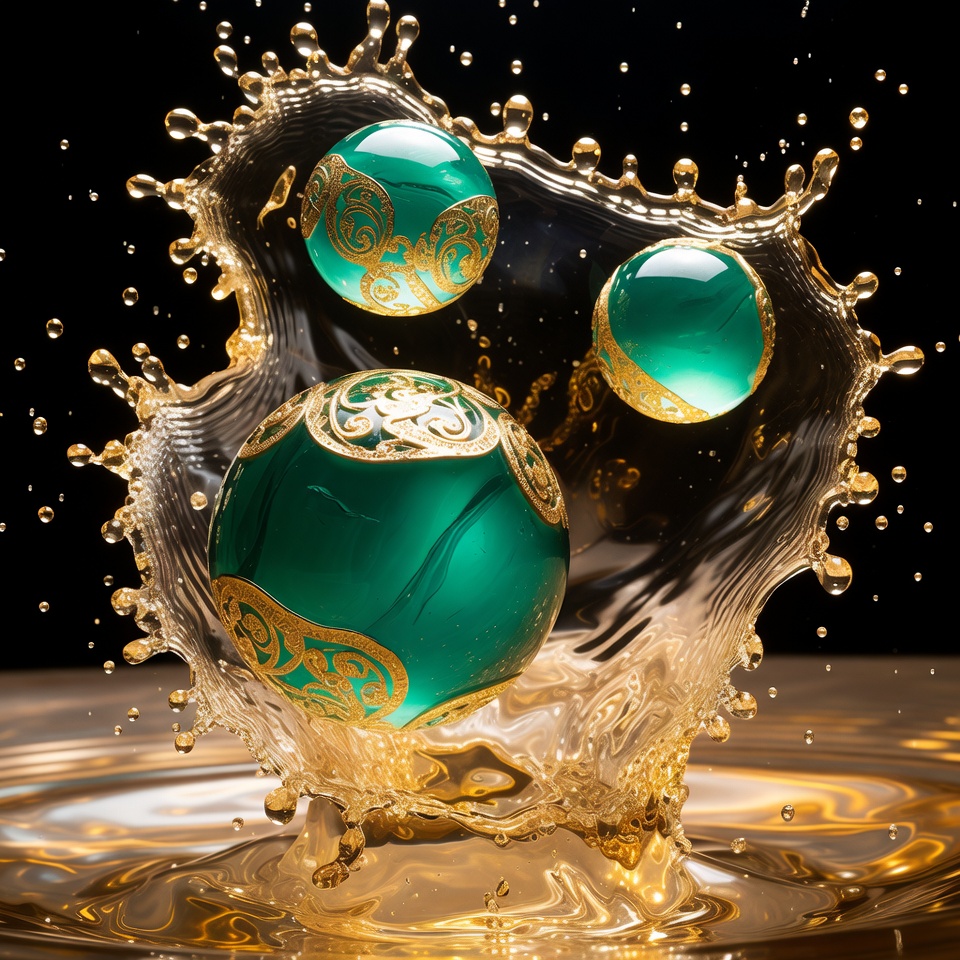 Emerald Orbs in Golden Splashes
