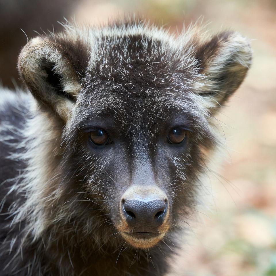 Closeup of baby raccoon face
