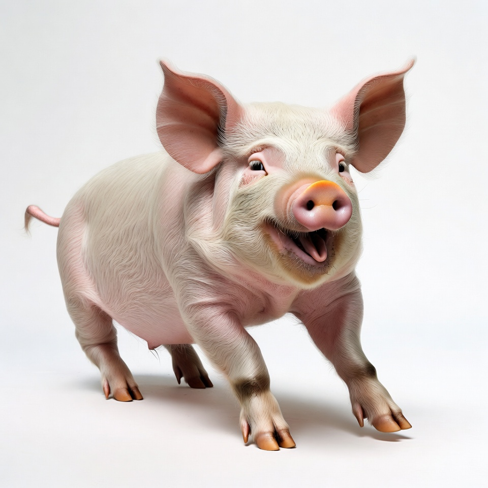 animal, baby pig, big snout, cute pig, farm animal, floppy ears, happy pig, isolated, piglet, pink pig, playful pig, smiling pig, white background, pig