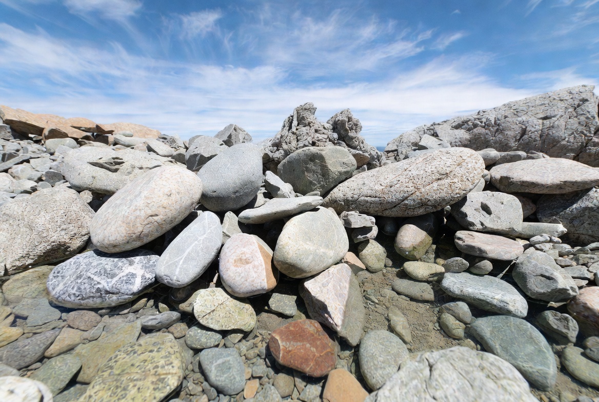 beach rocks, blue sky, boulders, brown rocks, clouds, colorful rocks, gray rocks, large rocks, nature, outdoors, pebbles, red rocks, rocky beach, rugged terrain, sand, seashore, smooth stones, stone pile, water, white rocks, rocks