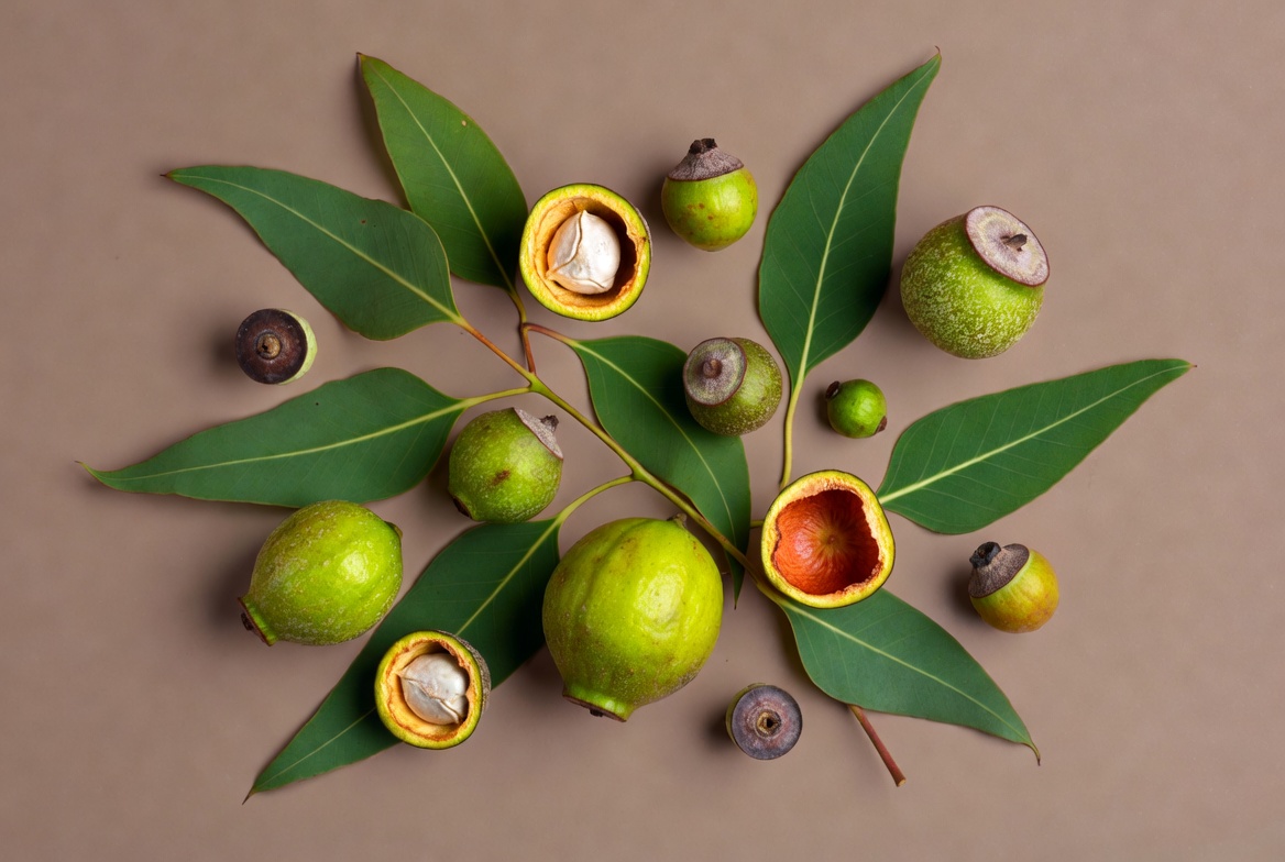 Fresh Macadamia Nuts with Eucalyptus Leaves