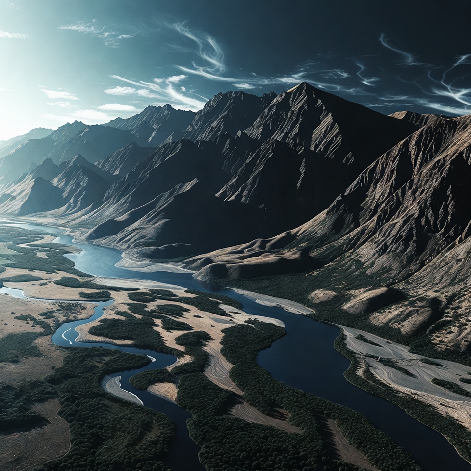 Majestic Mountains with Winding River