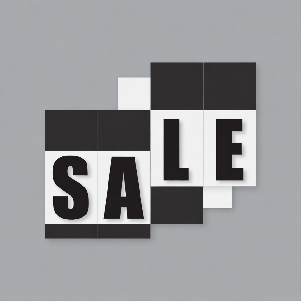 SALE text, black white, bold letters, clipart, discount sign, geometric blocks, graphic, grid design, isolated background, modern design, promotion graphic, squares, typography, vector art, sale
