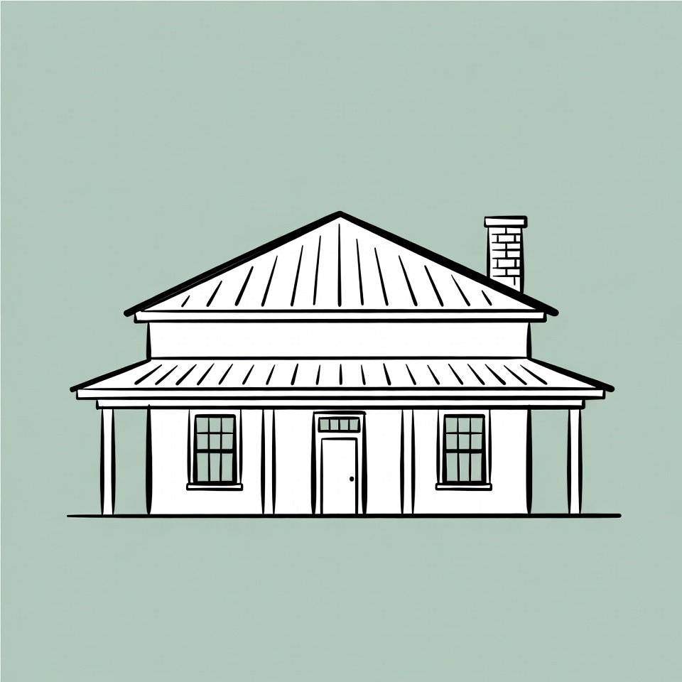 Line drawing of farmhouse house