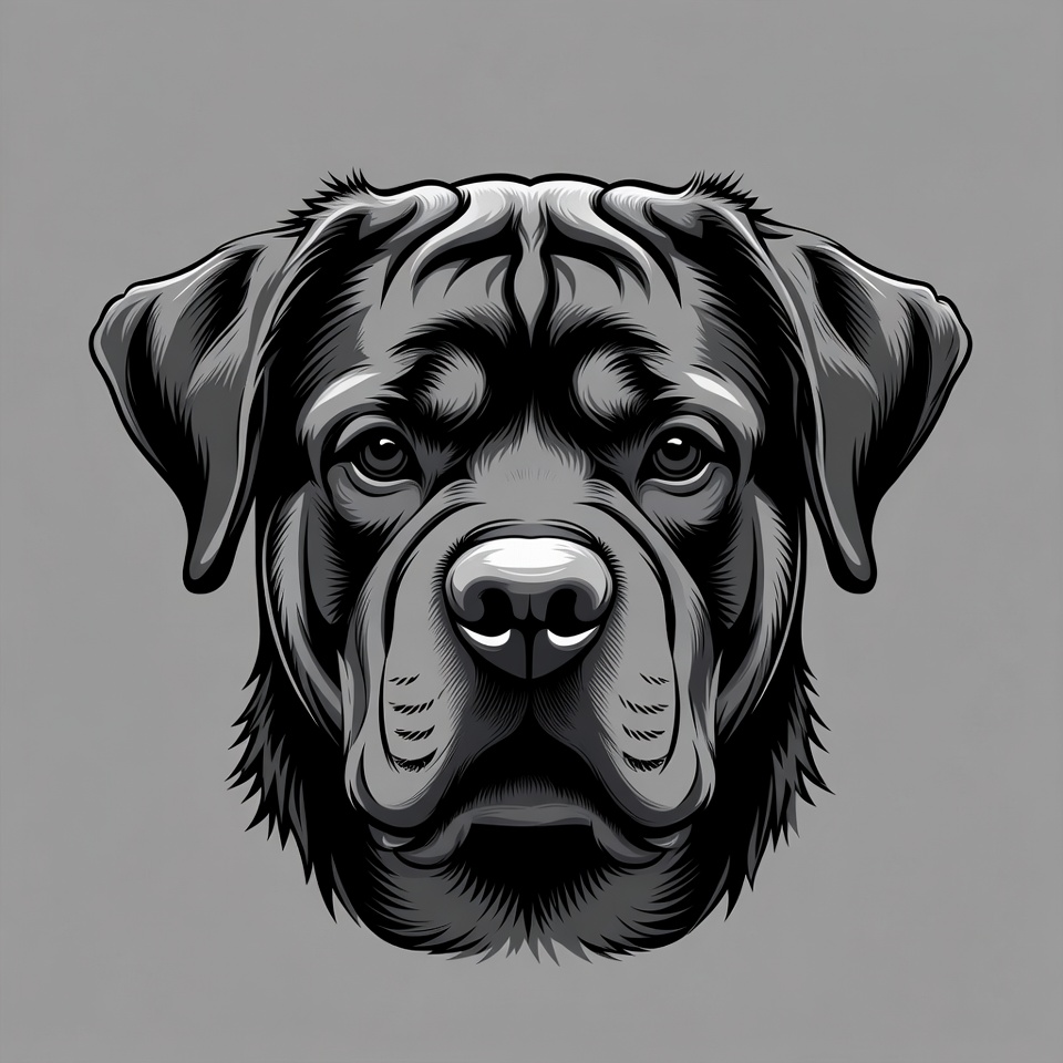 animal, black and white, canine, detailed fur, dog, dog ears, dog eyes, dog head, dog nose, fierce dog, gray background, illustration, isolated background, muscular dog, pet, portrait, sketch, Rottweiler