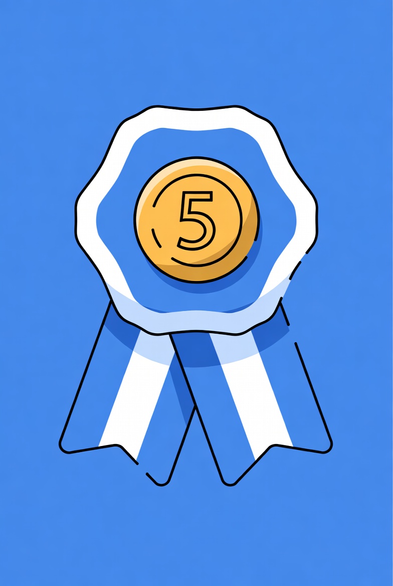 5th place, achievement, award, badge, blue ribbon, clipart, competition, contest, gold medal, illustration, isolated background, number 5, prize, ranking, ribbon, sports award, trophy, vector, winner, fifth place