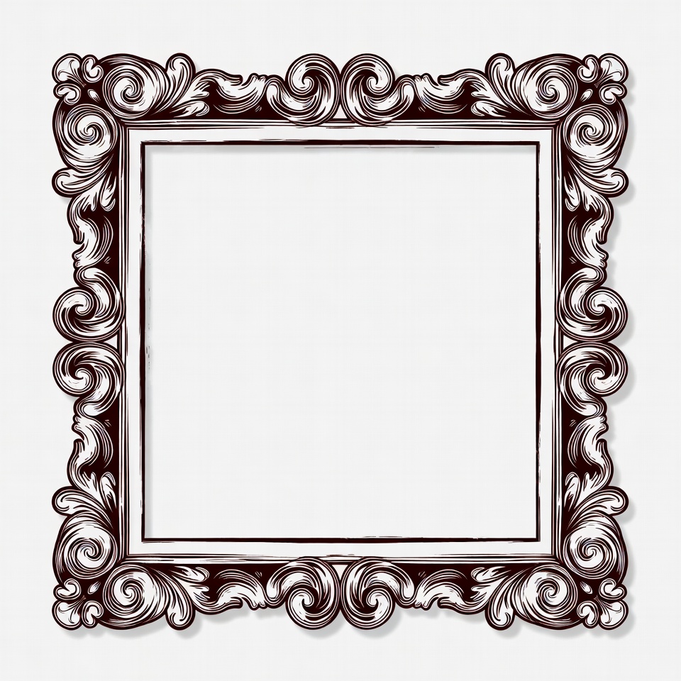 baroque frame, black frame, clipart, decorative frame, empty frame, flourishes, illustration, isolated background, line art, ornate frame, scrolls, symmetrical design, vector frame, vintage frame, white interior, picture frame